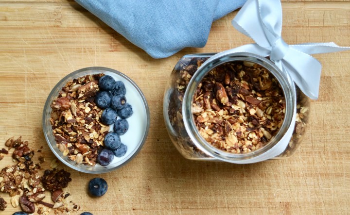 My husband loves granola! Here is my recipe of a Scandinavian granola – that means it’s not so sweet as in USA. I use honey to make it a bit sweet and crunchy, but it’s still healthy in your breakfast yoghurt, since it’s not THAT sweet. I like to use fresh berries with my granola, but you can of course add dried dried fruits and berries. Try the Scandinavian granola and tell me what you think!