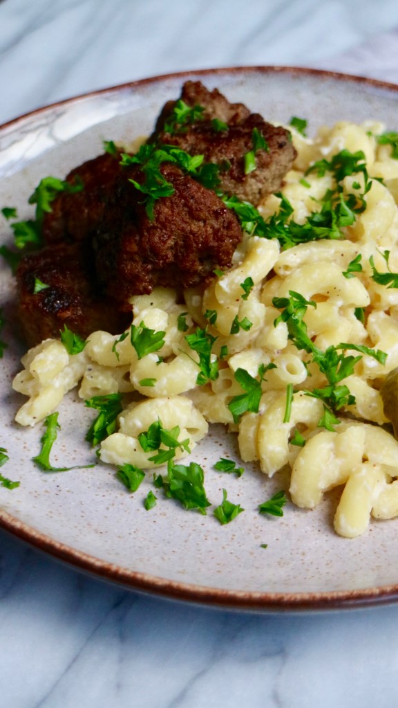 There is nothing better than serving milk stewed macaroni with my Swedish meatball. Enjoy!