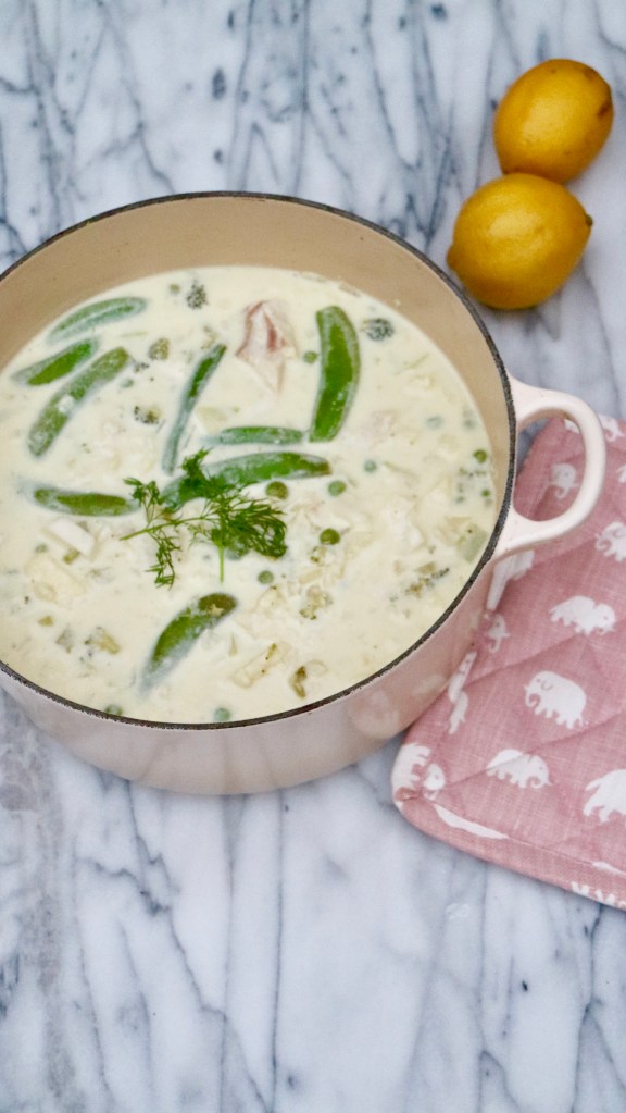 This fish stew is a quick, healthy and delicious meal for the whole family. Stew is something we do a lot in the Scandinavian kitchen this time of the year. It’s very simple and you can vary without any limits. You can use my recipe has a base, and then you can vary with e.g. adding shrimps or mussels. You can replace the wild cod use here with another white fish or preferred fish, or mix different sort of fishes. You can also add some white wine if you have a bottle open, or make it even more creamy with some cream. If you and your family prefer more vegetable, add e.g. potatoes, pepper, carrots or what you have at home / what’s in season.